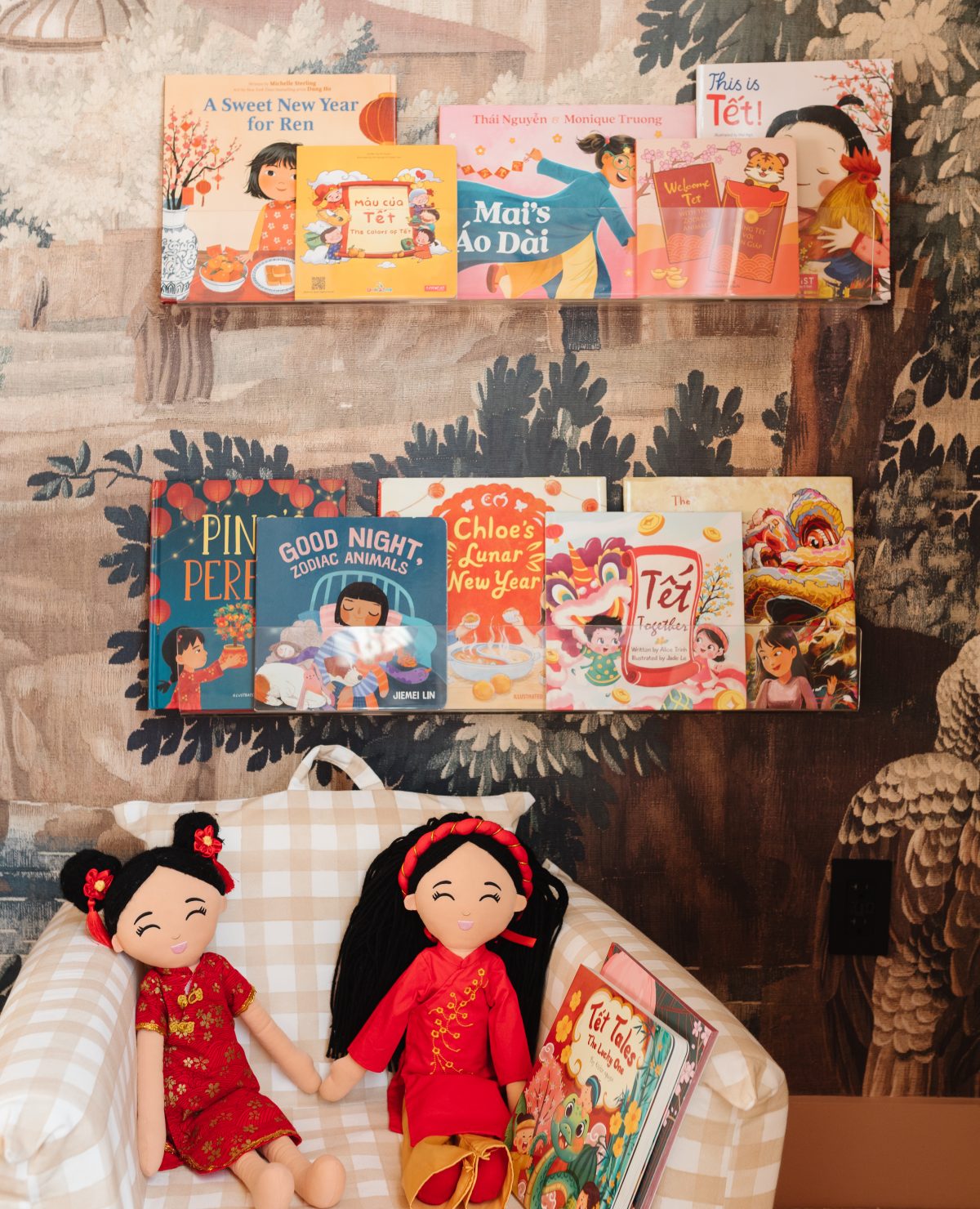 Lunar New Year is right around the corner! As our toddler is 2.5 years old now, reading is truly such a joy with her. We rotate her books every couple of weeks and adding in these cultural books was such a wonderful moment. Growing up, I didn’t have Lunar New Year books like this. I’s incredible to see the amount of diversity in books now for our daughters. You can find all the books and how we styled it on our daughter’s shelf here! Mai’s Áo Dài Our daughter absolutely loves this book! Takes place on the morning of T?t…