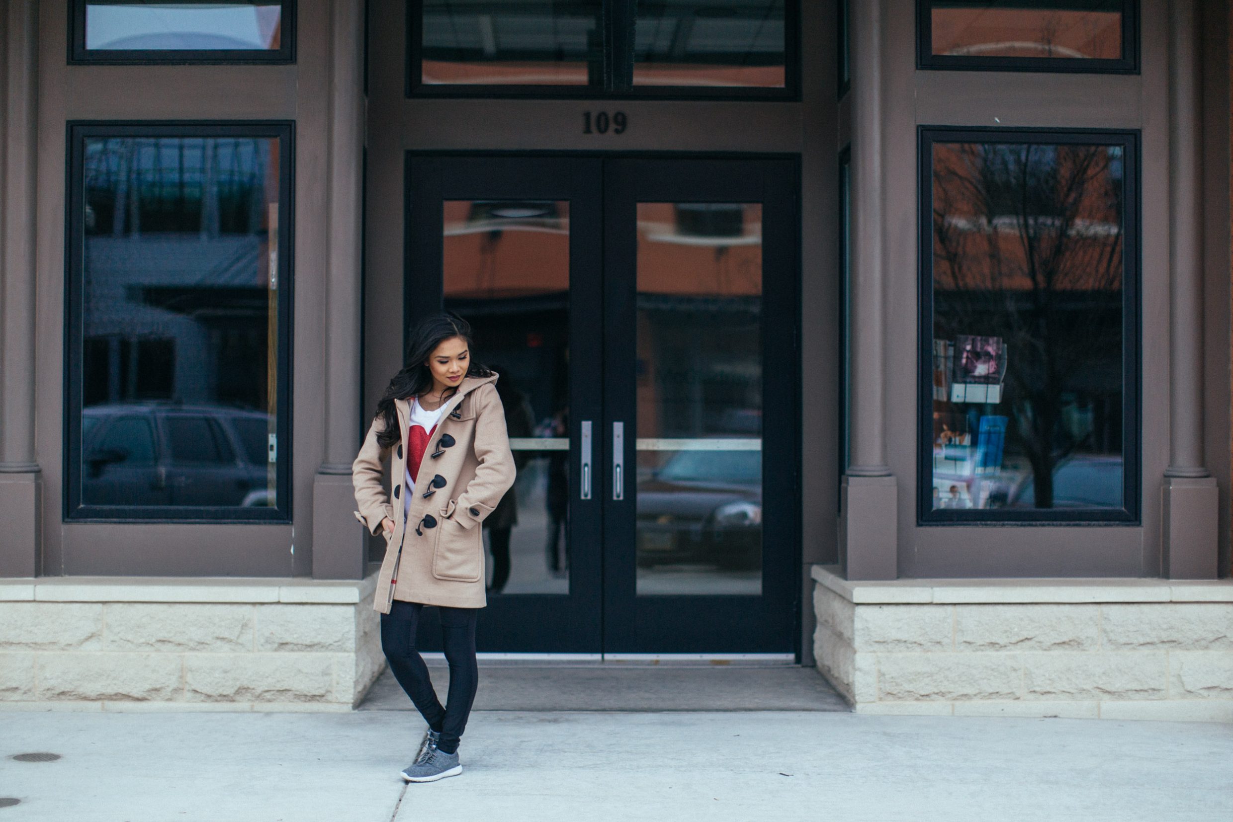 Wildfox jumper, J.Crew cashmere shell, Burberry duffle coat,