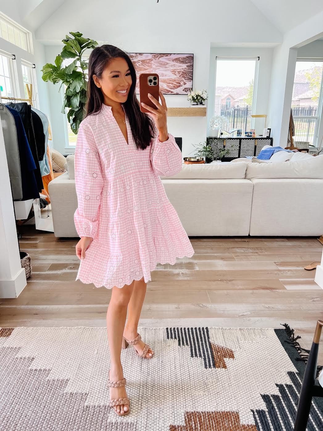 Let’s start with the tiered dresses! Tiered silhouettes are a favorite of mine because it’s very much in style but also timeless enough that you can wear them for years, especially when the dresses are as high quality as these. This coral eyelet dress is fully lined and has pockets, which are two details that really improve comfort and functionality. Coral in general feels very refreshing, which is perfect for spring! Another one of my favorite spring outfits is this white ruffled clip dot dress, perfect for every bridal event. This one is also fully lined – so important for white dresses. Finally, this pink gingham dress – another fully lined option and you can really feel how well made it is. I can see it being just right for vacation!